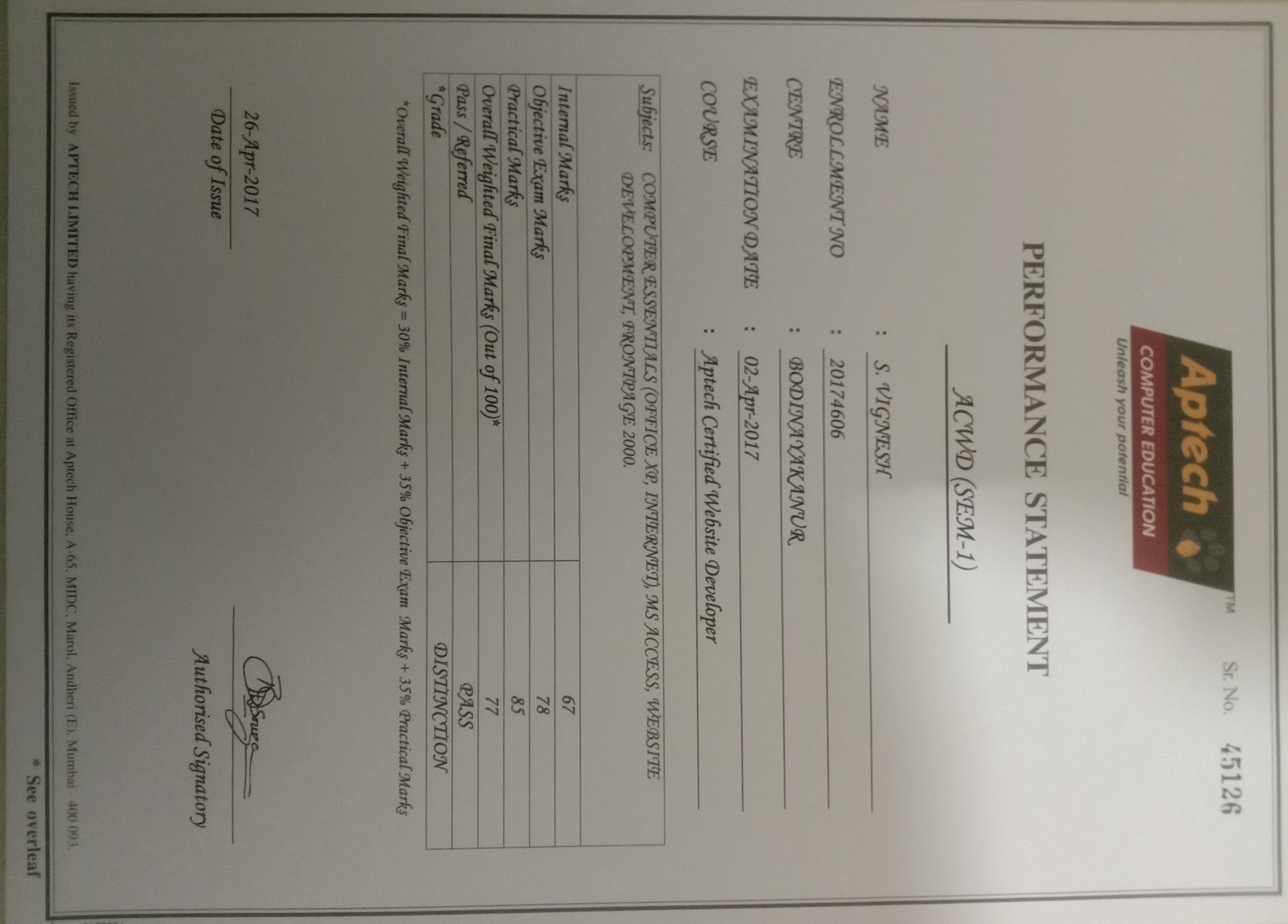 Degree : Bachelor Of Engineering